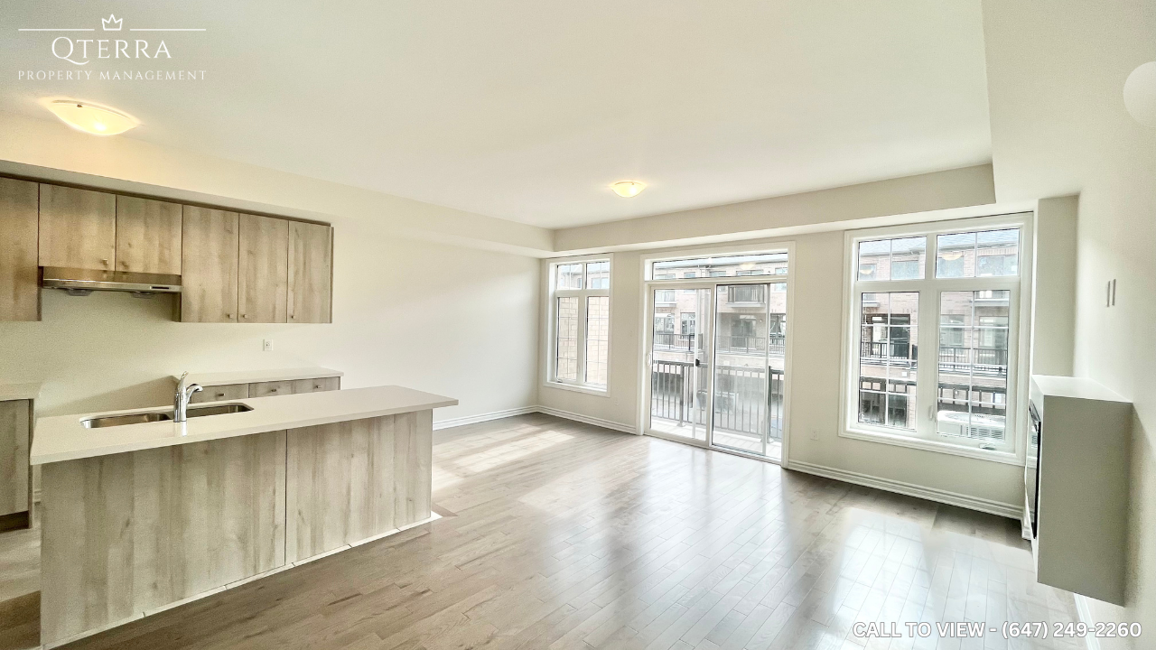 STUNNING 4-BEDROOM FREEHOLD TOWNHOUSE WITH MODERN UPGRADES Text or Call to View: (647) 249-2260 Welcome to luxury living at its finest! This stunning modern townhouse offers a perfect blend of elegance and comfort. With breathtaking views, this property is truly a dream home. KEY PROPERTY DETAILS: - Type: Freehold Townhouse - Bedrooms: 4 - Bathrooms: 3 - Size: 2200 SQF - Availability: April 1, 2025 - Parking: 2 spots Included - Virtual Tour: [https youtu be FyN8RG-tNSA](https youtu be FyN8RG-tNSA) UNIT AMENITIES: - Condition: Brand new, well-maintained unit ready for move-in. - Upgraded Kitchen: Featuring stainless steel appliances, quartz countertops, and an upgraded backsplash for a sleek, modern look. - Dishwasher: Included for added convenience. - Flooring: Durable laminate flooring throughout the unit, providing a contemporary and easy-to-maintain finish. - Ceiling: 10-foot ceilings offering a spacious and open atmosphere. - Thermostat: Personal thermostat for customized comfort. - Laundry: Convenient ensuite laundry facilities. - Closets: Walk-in closet in the primary bedroom, regular closets in all rooms for ample storage space. - Bathrooms: Upgraded bathrooms with contemporary fixtures. En-suite bathroom in the primary bedroom only. - Open Concept Layout: Spacious and flexible living area. - Furnishing: Unfurnished, allowing you to personalize the space. - Natural Light: Tons of natural light, creating a bright and inviting environment. BUILDING AMENITIES: - View: Serene views of the courtyard and backyard. - Balcony: Private balcony for outdoor relaxation. - Garage: Private walk-out garage for easy access. - Driveway: Full driveway with ample parking space for your vehicles.