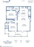 | Torino Vista | 2 bed | 2 bath | 1,170 sqft | $1,619 /mo | 2 units available | DimensionsSquare Feet - 1170Living Room - 12'0" x 12'3"Dining Room - 9'0" x 9'0"Bedroom 1 - 13'0" x 11'0"Bedroom 2 - 12'4" x 14'8" DescriptionThis two bedroom, two bathroom, 1106 square-foot floor plan features an island kitchen, four large closets, two built-in desks, and an attached garage. Always located on the 3rd floor. | |