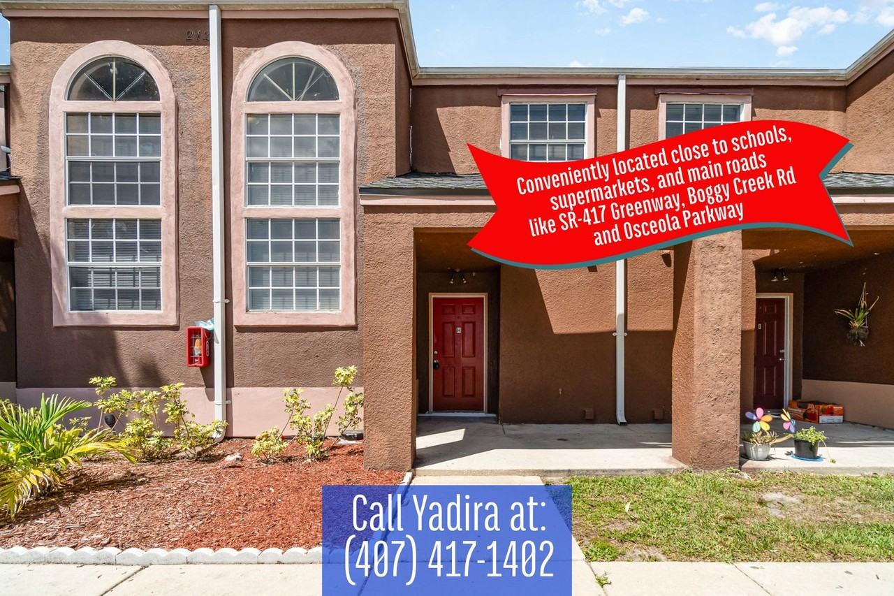 Townhouse For Rent - January Move-in! CALL YADIRA TODAY for rental details at (407)417-1402. MOVE-IN SPECIALS: Free 1/2 Month Rent, waived Processing Fee and $250 Security Deposit based on approval Beautiful Townhouse For Rent with 2 beds 2.5 baths. Spacious two-story unit with relaxing lake view in the heart of the Buena Ventura Lakes area in Kissimmee. This home features a full kitchen with clean crisp cabinets, appliances that include refrigerator, exhaust hood, and stove. It is equipped with central A/C and a 2nd floor balcony with relaxing lake view. There is assigned parking on property. Conveniently located close to schools such as Ventura Elementary School, Parkway Middle School, and Tohopekaliga High School. Short distance to Publix, Key Food & Walmart. Walking distance to a community park and Lynx bus stops. There is easy access from the property to main roads like SR-417 Greenway, Boggy Creek Rd., Osceola Parkway and Florida's Turnpike. Also close to the Orlando International Airport and the growing Lake Nona area. Rental Terms - Lease starting at 7 Months - Application Fee: $29.00 each adult 18+ - Security Deposit: starting at $250.00 based on approval - Rent: $1,645.00 - Technology Access Monthly Fee: $9.95 Contact Yadira - Leasing Director at (407)417-1402 and/or email **** so we can discuss the requirements for this rental property. (Photos And Appliance May Vary)(Decorative items are not included)