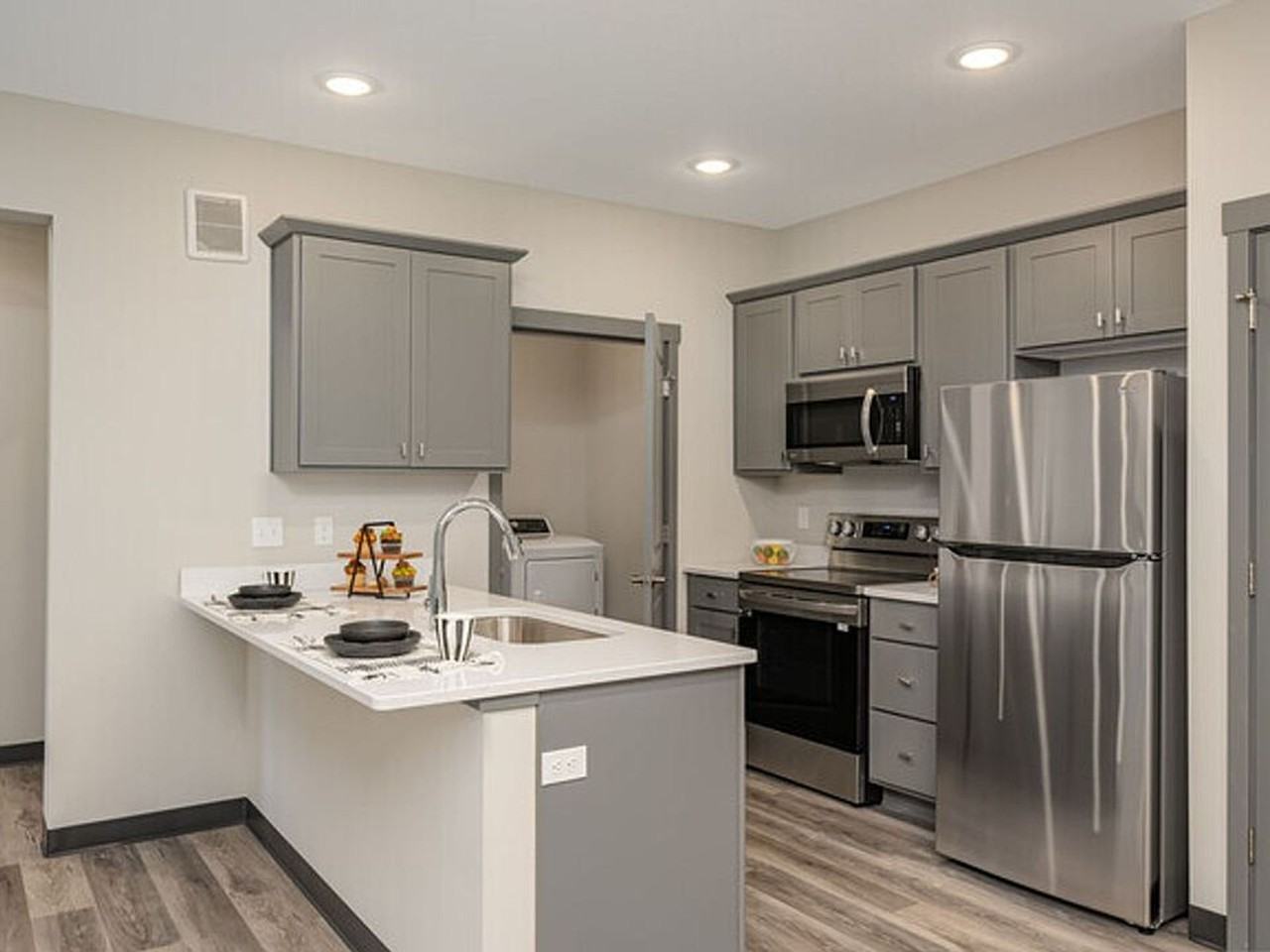 | 2BR/2.0BA | 2 bed | 2 bath | 1,149 sqft | BRAND NEW CONSTRUCTION Each unit is masterfully designed with Luxury and Convenience in mind, featuring contemporary finishes and an open-concept layout. You'll fall in love with our brand new appliances that make cooking a breeze and family gatherings more meaningful than ever! Located in the cozy city of Cottage Grove, be prepared to step off onto your balcony to stunning scenic views. Enjoy the convenience of living minutes away from your favorite restaurants and stores, and the local Community Park for the kiddos. Also, Take advantage of our FREE underground HEATED parking. For added peace of mind, our building is equipped with secure access and 24/7 professional management available to address your needs. The View is an apartment community located in Washington County and the 55016 ZIP Code. This area is served by the South Washington County School Dist attendance zone. | ||