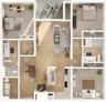 | B5r | 2 bed | 2 bath | 1,432 sqft | These renovated homes include: quartz countertops, plank wood flooring throughout including bathrooms,updated lighting, ceiling fans in all bedrooms and living room, track lighting in kitchen, updated hardware in kitchen and bathrooms, framed mirrors in bathrooms, white tile backsplash in kitchen and new stainless-steel appliances. | ||