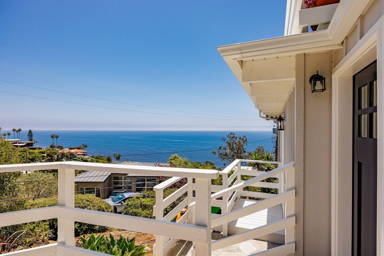| 2BR/1.5BA | 2 bed | 1.5 bath | 1,076 sqft | Enjoy one of the best panoramic ocean views that Laguna has to offer! This is a unique, must-see private property nestled up the hill from iconic Woods Cove and its stunning beaches. With this expansive ocean view, you can see the coastline for miles, including Main Beach and beyond. Recently updated, this 2 bedroom, 1.5 bath home is surrounded by 3 full view expansive patios, including a garden area for outdoor entertaining. The living room has large windows staring into the Pacific blue ocean and is a nice space to relax, soak in the view, and listen to the soothing waves. The primary bedroom also faces the stunning ocean view and includes a cozy fireplace. The kitchen features fresh blue countertops, tiled backsplash, and is equipped with stainless steel appliances and plenty of cabinetry for storage. Located adjacent to the living area is an updated beautiful stone bathroom. The second bedroom may be used as a bedroom or office and also includes a bathroom. There is an enclosed 2 car garage that is detached and the laundry room is shared with the upstairs one bedroom tenant. This home is walking distance to Laguna's HIP district, including renowned beaches, restaurants, art galleries, shopping, and more. Laguna Beach offers an elevated lifestyle while being down-to-earth with its welcoming community. An additional fee for utilities, including water, trash, gas, will apply. Tenants are responsible for paying their own cable/internet expenses. |