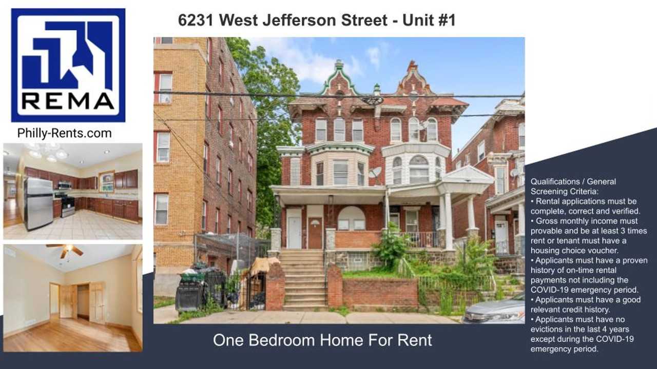 MASSIVE ONE BEDROOM APARTMENT FOR RENT ON JEFFERSON STREET Qualifications / General Screening Criteria: • Rental applications must be complete, correct and verified. • Gross monthly income must provable and be at least 3 times rent or tenant must have a housing choice voucher. • Applicants must have a proven history of on-time rental payments not including the COVID-19 emergency period. • Applicants must have a good relevant credit history. • Applicants must have no evictions in the last 4 years except during the COVID-19 emergency period. Consumer Notice - Real Estate Management Advisors, LLC in an exclusive agent of the landlord. Real Estate Management Advisors, LLC - REMA Licensed Real Estate Broker Property Manager Servicing Commercial & Residential Properties in the Philadelphia area. Check out more properties for rent at http www reinfo411 com residential-properties-for-rent Like us on facebook at https www facebook com REINFO411 Justin DeMicco (330) 690 7707 **** Sales Division / Asset Management Real Estate Management Advisors