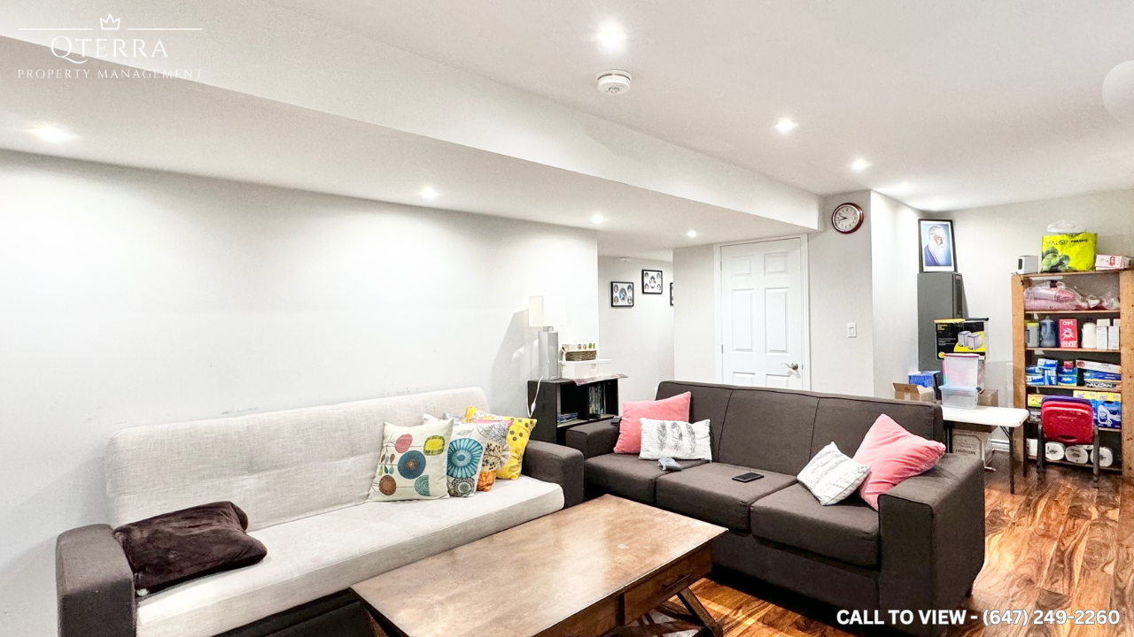 BEAUTIFUL 2+DEN BASEMENT APARTMENT IN A PRIME LOCATION Text or Call to View: (647) 249-2260 Discover a newly renovated, spacious 2+Den basement apartment boasting 1000 square feet of modern living space. Don't miss out on this incredible opportunity to live in a beautifully renovated basement apartment with all the modern amenities you need. KEY PROPERTY DETAILS: - Type: Basement Apartment - Bedrooms: 2+Den - Bathrooms: 1 - Size: 1000 SQF - Parking: 2 spots available - Availability: August 20, 2024 - Link to Virtual Tour: [https youtu be SQnm22McO3M](https youtu be SQnm22McO3M) UNIT AMENITIES: - Property Condition: Newly renovated, ensuring a fresh and modern living space. - Laundry: Shared laundry facilities for convenience. - Microwave: High-quality microwave included. - Personal Thermostat: Individual thermostat for personalized climate control. - Private Garage: Secure parking with direct access to the unit. - Upgraded Bathrooms: En-suite bathroom in the primary bedroom for added privacy. - Upgraded Back Splash: Stylish and easy-to-clean kitchen backsplash. - Walk-out Garage: Direct access from the garage to the apartment. - Upgraded Kitchen: Fully modernized kitchen with high-end features. - Closets: Regular closets in all rooms for ample storage. - View: Scenic views of the courtyard and backyard. - Countertops: Durable and elegant quartz countertops. - Flooring: Easy-to-maintain vinyl flooring throughout. - Ceiling Height: 8-foot ceilings for a spacious feel. - Backyard: Shared backyard space for outdoor enjoyment. - Layout: Open concept layout for flexible living and entertaining. - Tons of Natural Light: Bright and cheerful interiors. BUILDING AMENITIES: - BBQ Area/Terrace: Outdoor BBQ area and terrace for hosting gatherings. - Remote Garage: Remote-controlled garage access for added convenience. - Bicycle Storage: Dedicated bicycle storage area to keep your bike secure. - Outdoor Patio: Shared outdoor patio space for relaxation and leisure.