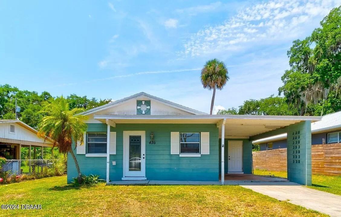 Charming 3-Bedroom Home in Edgewater, FL Welcome to 436 Palmetto St, a delightful 3-bedroom, 1-bathroom home in Edgewater. This cozy 924 sq. ft. residence, built in 1976, offers comfort and modern amenities, making it an ideal starter home or investment. Interior Features: Bedrooms: Three well-sized bedrooms. Bathroom: Full bathroom with modern fixtures. Kitchen: Renovated with stainless steel appliances, shaker-style cabinets, subway tile backsplash, and butcher block countertops. Flooring: Wood-like tiles throughout. Cooling&Heating: Central air and electric heating, installed in 2023. Exterior Features: Roof: New roof installed in December 2023. Outdoor Space: Generous yard and screened porch. Parking: Covered carport. Location: 15 minutes from the beach, 10 minutes from schools, and close to dining, shopping, parks, and a library. Enjoy river views along Riverside Drive. Additional Info: Lot Size: 6,098 sq. ft. Utilities: Not Included