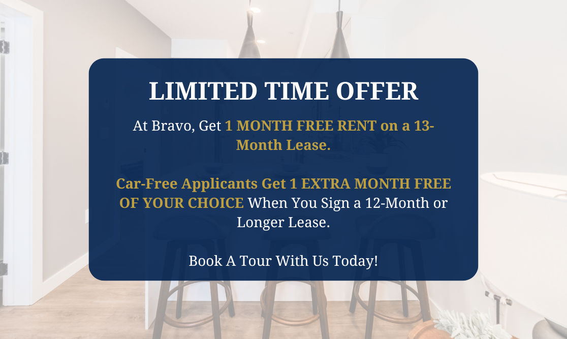 EXCLUSIVE LIMITED TIME INCENTIVES Get 1 MONTH FREE RENT When You Sign a 13-Month Lease. Car-Free Applicants Get 1 EXTRA MONTH FREE When You Sign a 12-Month or Longer Lease! Contact Us Today! Welcome to Bravo Apartments, a modern residential haven nestled within Edmonton’s Grovenor neighbourhood. With 47 thoughtfully designed units, Bravo offers a blend of contemporary charm and urban convenience. Discover a community where stylish living meets the tranquility of one of Edmonton’s most sought-after locales at Bravo Apartments. Come explore Bravo and discover your new home today. Bravo Apartments offer a range of amenities designed to enhance residents’ comfort and convenience. These include a rooftop patio with BBQ featuring stunning views, ideal for relaxation and social gatherings. The building also features a bike storage room, with repair station and air pump, along with a pet wash area, catering to active lifestyles and pet owners. Additionally, tenant storage lockers ensure ample space for personal belongings. Inside the units, residents enjoy the modern touch of vinyl planking, two-toned cabinets, and large windows that fill the spaces with natural light.