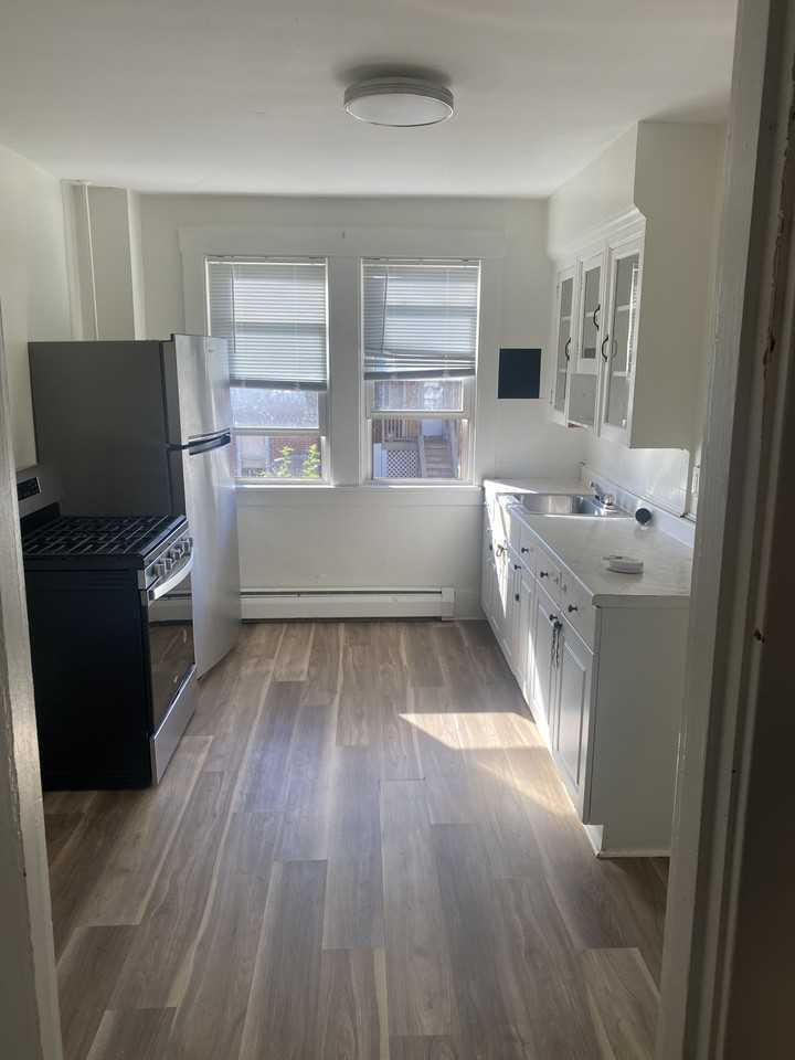 Newly Remodeled 2 bedroom unit with newer appliances and beautiful LVT flooring with new carpet. Ground floor unit with access to own washer and dryer. Parking available and on bus line. No smoking in unit and no pets. Water Sewage and garbage charged monthly in addition to rent. Gas and Electric are separate. Solid place for single person or a couple. Loctated in a 5 unit building. Nice and very clean.