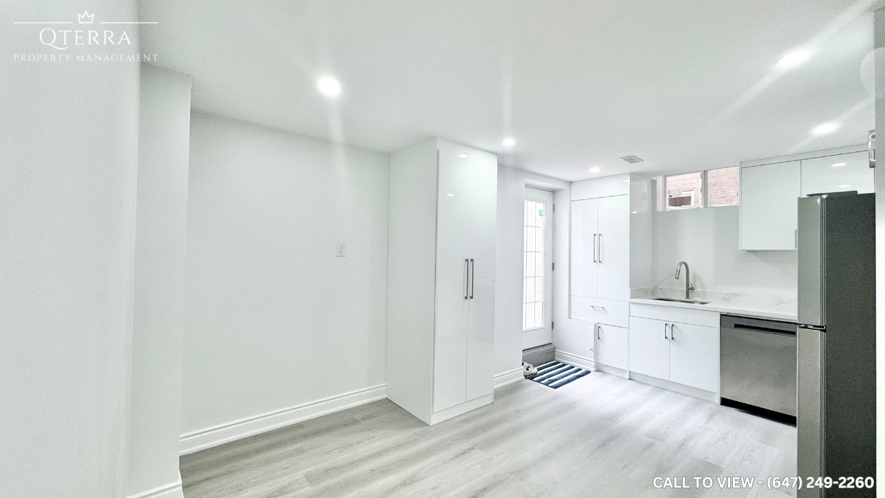 MODERN 2-BEDROOM BASEMENT APARTMENT IN A FRIENDLY NEIGHBORHOOD Text or Call to View: (647) 249-2260 This stunning basement apartment is perfect for individuals or small families looking for a modern and comfortable living space. Don’t miss out on this opportunity to make this beautiful property your new home! KEY PROPERTY DETAILS: - Type: Basement Apartment - Bedrooms: 2 - Bathrooms: 1 - Size: 1100 SQF - Parking: 1 space available - Availability: Immediately - Virtual Tour: [https youtu be r9t4zTDiG8I](https youtu be r9t4zTDiG8I) UNIT AMENITIES: - Condition: The property is in brand new condition, ready for immediate move-in. - Upgraded Kitchen: Equipped with high-quality LG appliances and a stylish upgraded backsplash. - Bathrooms: The bathroom has been upgraded with modern fixtures and finishes, providing a sleek and contemporary feel. - Flooring: Laminate flooring throughout the unit adds a touch of elegance and is easy to maintain. - Ceiling: 8-foot ceilings create a spacious and airy environment. - Laundry: Convenient ensuite laundry facilities. - Closets: The primary bedroom features a walk-in closet, providing ample storage space. - Layout: The open concept layout enhances the sense of space and modern living. - Natural Light: Plenty of natural light, making the space bright and welcoming. BUILDING AMENITIES: - View: Enjoy views of the courtyard and backyard, offering a peaceful and serene setting.