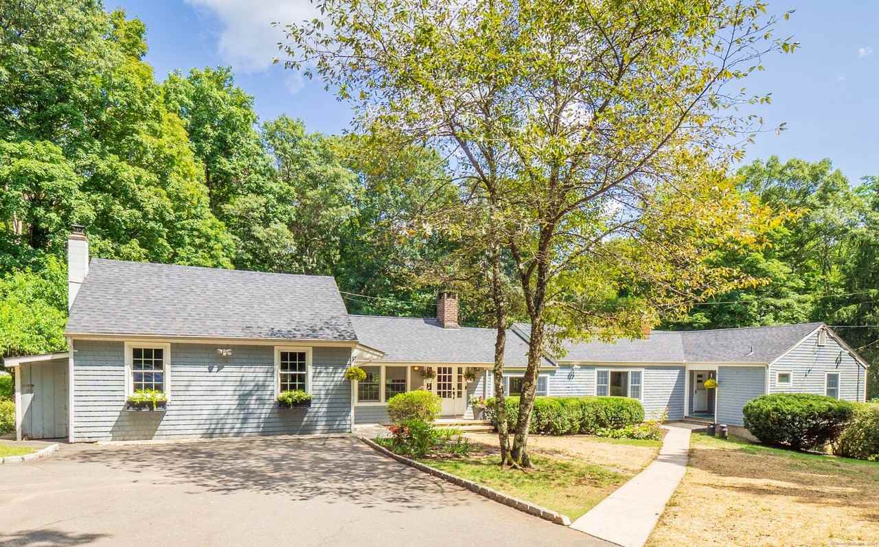 | 10 Gaylord Drive South - 1 | 4 bed | 3 bath | 3,615 sqft | Charming, private retreat in the heart of Wilton! Discover this sprawling ranch, offering convenient single-level living tucked away at the end of a quiet cul-de-sac. The home sits on 1.1 acres bordered by conservation land, with direct access to the scenic NRVT trail from your backyard! Minutes from town, train stations, and highways, this home is perfect for commuters. Inside you'll find an updated kitchen with an oversized island, a wood burning stove, and sliding glass doors leading to an expansive deck. The kitchen blends seamlessly into the dining and living areas, all flooded with natural light. Pristine hardwood floors, a cozy wood burning fireplace, and custom built-ins add warmth and elegance to the main level. The fully finished 1,400 sq ft lower level offers versatile additional living space ready for entertaining, complete with a built-in bar, full bathroom, laundry, and sliding doors leading outside. This home boasts a flat, private backyard ideal for outdoor enthusiasts |