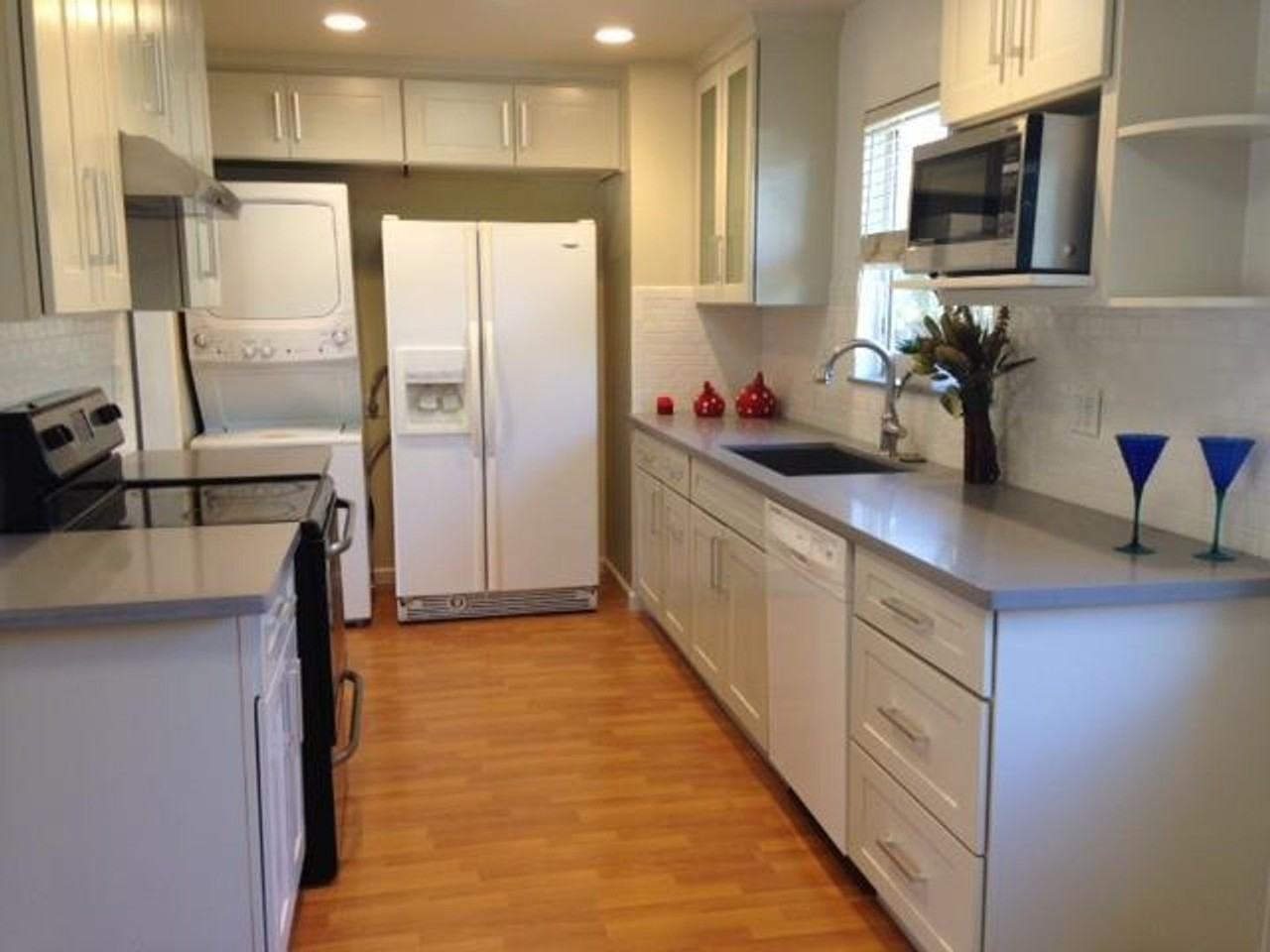 A stylish one-bedroom Home. This unit offers two full bathrooms for added convenience. Inside, recessed lighting creates a modern feel, while hardwood floors bring warmth and easy maintenance. The kitchen features quartz counters and comes equipped for everyday cooking. A washer and dryer are included, along with a one-car garage for secure parking. Great location! Near tech companies! Call us today!!