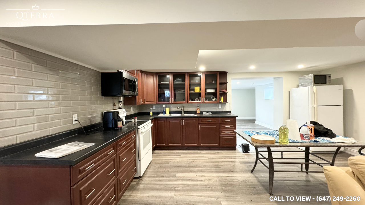 SPACIOUS 2-BEDROOM BASEMENT APARTMENT WITH MODERN FEATURES Text or Call to View: (647) 249-2260 Welcome to your new home! This newly renovated 2-bedroom, 1-bathroom basement apartment offers a perfect blend of modern amenities and cozy living. With 1800 square feet of living space, this unit is ideal for families or professionals seeking a spacious and contemporary home. KEY PROPERTY DETAILS: - Type: Basement Apartment - Bedrooms: 2 - Bathrooms: 1 - Size: 1800 SQF - Parking: 2 spots included - Locker: 1 included - Availability: December 1, 2024 - Virtual Tour: Coming Soon UNIT AMENITIES: - Property Condition: Newly renovated, ensuring a fresh and modern living space. - Upgraded Kitchen: Enjoy cooking in a kitchen equipped with stainless steel appliances, Formica countertops, and a stylish backsplash. - Laminate Flooring: Beautiful laminate floors throughout the unit. - 7.5 Foot Ceiling: High ceilings that create a spacious and airy atmosphere. - Fireplace: Cozy up by the fireplace during colder months. - Laundry: Ensuite laundry facilities for your convenience. - Upgraded Bathroom: Featuring an en-suite bathroom for added privacy and convenience. - Regular Closets: Ample storage space in all rooms. - Unfurnished: Ready for you to add your personal touch. - Open Concept Layout: Spacious and open layout for comfortable living. - Natural Light: Creating a bright and welcoming atmosphere. BUILDING AMENITIES: - View: Enjoy views of the courtyard and backyard. - Shared Backyard: Enjoy outdoor space with a shared backyard. - Driveway: Convenient parking with a full driveway.