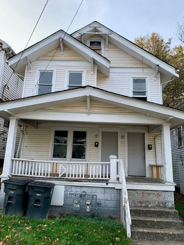 Two bedroom - one bath upstairs apartment. Kitchen comes with a stove and has large pantry for storage. Dining room leads to small deck/porch. Tenant pays all utilities at this rental. Street parking only. One year lease required plus security deposit. No pets and No HUD.