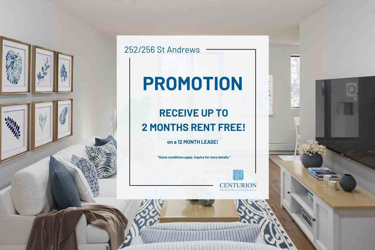 Welcome to 252/256 St. Andrews, where convenience meets elegance at the corner of Southwood and St. Andrews in Cambridge. These charming low-rise apartment buildings feature generously sized two-bedroom suites, perfectly situated in a desirable location. With a modern color palette and upgraded finishes, each apartment offers a stylish living space, complemented by picturesque views of lush greenery just outside your windows and doors. Experience the perfect blend of comfort and natural beauty at St. Andrews. PROMOTION: Receive up to 2 months of rent FREE & No last month's rent deposit! - On a 12 month lease! *Some conditions apply, please inquire for more details.* Looking for a future move-in date? Give us a call today to speak with one of our Customer Care Representatives to find out more! Suite offers: - Open concept layouts with large bright windows - Ceramic floors in the kitchen - Ample closet and storage space Property offers: - Pet-friendly - Laundry facilities - Outdoor and visitor parking - Dedicated onsite staff - Customer service department available The community offers: - Minutes to Westgate Centre which includes a Sobey's, Tim Horton's, Pet Valu and more - St. Gregory Catholic Elementary Schoool, St. Andrew's Public School and Southwood Secondary School are close - Close to Victoria Park, Hancock Park, Grand River, and Conservation Park - Grand River Transit Route 62 is close to the building - Just a short drive to downtown Cambridge Fees: *Hydro not included. Heat & Water included. *Outdoor Parking: (1st spot): $60/month *Outdoor Parking: (2nd spot): $75/month Suite images shown represent standard unit finishes, which may differ between units. Suite layout varies.