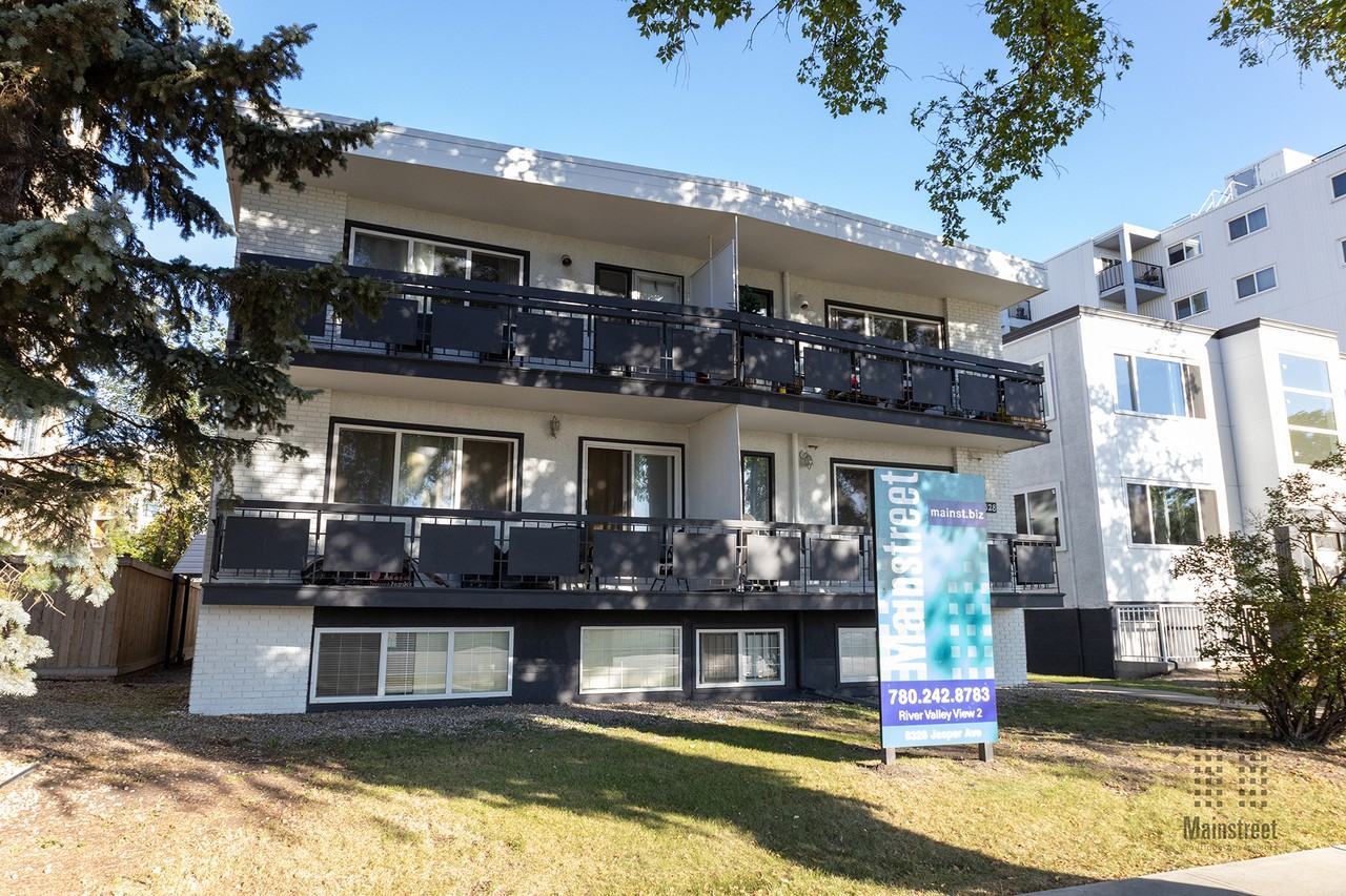 Property Description The best rental apartments in Jasper Ave. area are affordable, pet-friendly, and perfectly located with incredible views of the River Valley, and comfortable balconies from which to enjoy the scenery. Mainstreet’s River Valley View Apartments 2 are perfectly located apartments with the right amenities and price to call them home. Picture yourself relaxing on your balcony, watching the sun as it sets gracefully over the River Valley. These boutique suites feature a mixture of hardwood, laminate, and comfortable carpet and all suites come internet-ready and cable-ready for the fastest connections. We offer security patrols for safety and onsite laundry for your convenience. Moving is simple, we provide your fridge, stove, and window coverings, and we keep your costs down by paying the heat and water bills for you. This property is also low-density, meaning fewer people enjoying more space with less noise. With so much going for them, these units don’t last long so [apply online now!](https secured-forms com reply-to mainstreet rental-application) 1 Bedroom Amenities - Laundry facilities - Convenience store - Fridge - Stove - Carpeted floors - Hardwood floors - Individual thermostats - Cable ready - Window coverings - Public transit - Shopping nearby - Parks nearby - Schools nearby - Internet ready - No Smoking allowed - Laminate floors - Secure entry - Patrol Security - Secure entry Utilities Heat, Water Community You won’t find better deals on apartment rentals in the Jasper Ave. area. We’re across the street from Transit and the River, there are great bike paths just down the hill, and the downtown office core is just a short walk away. - Walk 10 min. to groceries at Save-On-Foods - Drive 13 min. to University of Alberta - Drive 7-minutes to MacEwan University - ICE District and Events Centre nearby! From the view to the price, you won’t find a better deal. [Apply online now!](https secured-forms com reply-to mainstreet rental-application) Suite availability, rental rates, included utilities, and incentives are subject to change without notice. Security deposit amounts may vary based on credit history, rental history, and risk assessment. Rental rates are net and include applicable incentives, based on a one-year lease term. Incentives apply to new applicants only and cannot be combined with other offers. Suite images are for reference only; actual suites may differ. Valid renter's insurance is required for all residents. Additional conditions may apply.