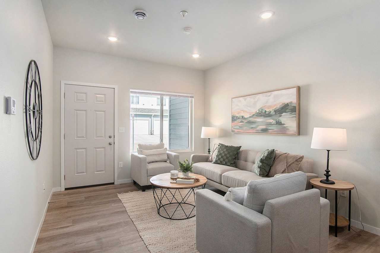 | Varro - Townhome(IK3D) | 3 bed | 2.5 bath | 1,270 sqft | $1,800 /mo | 3 units available | This beautiful two-story townhouse offers 1,270 sq. ft. of spacious living with 3 bedrooms, 2.5 baths, and a 414 sq. ft. attached garage. Enjoy a versatile bonus loft area—ideal for an office or lounge—and a cozy front patio, perfect for relaxing or entertaining. Modern, functional, and ready to call home! UNIT HIGHLIGHTS: • Coat Closet • Ground Level Entrance • Laundry Room • Loft • Front Patio • Private Entrance • Double Attached Garage • Shower in Master Bath • Linen Closet in Master Bath | |