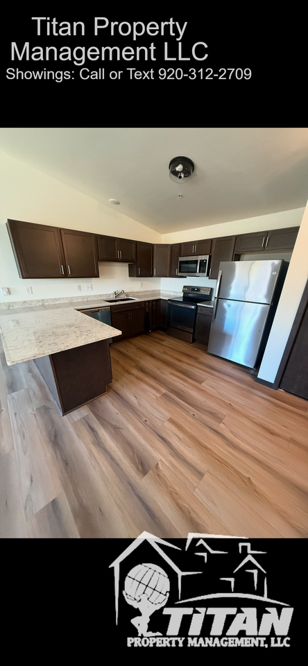 | N7353 Spring St, Fond du lac - B1 | 2 bed | 1 bath | 985 sqft | Be the first to rent this brand new apartment!! Large 2 bedroom 1 bathroom apartment with balcony. Quart kitchen countertops, upgraded cabinets, stainless steel appliances, in unit washer and dryer, and luxury vinyl plank flooring in common areas with carpeted bedrooms. Located just minutes from Lake Winnebago, Parks, Festival Foods and shopping. Located in the the best elementary school district as well. Upper units available for $100. Apartment comes with off street parking with no fee or garage parking for just $25/month. Some dogs and one cat are welcome with pet fee and deposit. Water is included! ONE MONTH FREE RENT WITH A SIGNED 12 MONTH LEASE. To schedule a showing please call 920-312-2709. Renters Insurance Required. $25 fee for Credit and Background Check |