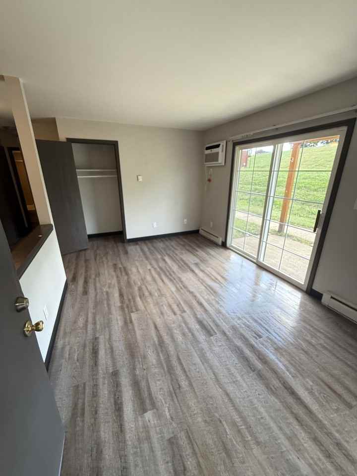 1 bed 1 bath first floor apartment 1 pet ok under 45lbs w/ fees not sect 8 approved at this time tenant pays E&W L& N prop mgt on site laundry patio off living room