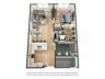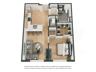 This thoughtfully designed two-bedroom, one-bathroom floor plan offers a spacious and modern layout, perfect for comfortable living. The open-concept living and dining area seamlessly connects to a stylish kitchen featuring sleek countertops, and ample cabinetry. The bedrooms include closets, providing excellent storage options. The bathroom boasts a contemporary design with a vanity and a full-size tub/shower combination. Additional highlights include in-unit laundry and a welcoming entryway. This floor plan is ideal for those seeking a balance of elegance and functionality!