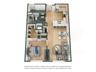 This one-bedroom, one-bathroom floor plan offers a spacious and modern design, perfect for comfortable living. The open-concept living area seamlessly flows into a stylish kitchen with an island, featuring bar seating, sleek countertops, and ample storage. A dedicated dining space enhances the layout for entertaining or everyday meals. The bedroom includes a large walk-in closet, providing excellent storage. The bathroom is thoughtfully designed with contemporary finishes and a full-size tub/shower combination.
