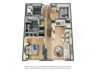 This thoughtfully designed one-bedroom, one-bathroom floor plan offers a spacious and modern layout, perfect for comfortable living. The open-concept living and dining area seamlessly connects to a stylish kitchen with an island, featuring bar seating, sleek countertops, and ample cabinetry. The bedroom includes a large walk-in closet, providing excellent storage options. The bathroom boasts a contemporary design with a double vanity and a full-size tub/shower combination.