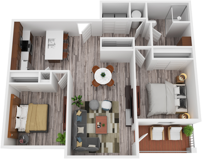 Discover the charm of the Madison floor plan at Legacy 34, one of our largest two-bedroom, two-bathroom apartments. This unit offers a peaceful retreat while keeping you just steps away from all amenities. This floor plan is available on all three floors. As you step inside, you'll be greeted by a modern kitchen with a spacious island—ideal for cooking and entertaining. The open-concept living and dining area extends to your own private balcony, perfect for relaxing and enjoying the view. Embrace comfortable and contemporary living with the Madison floor plan at Legacy 34.