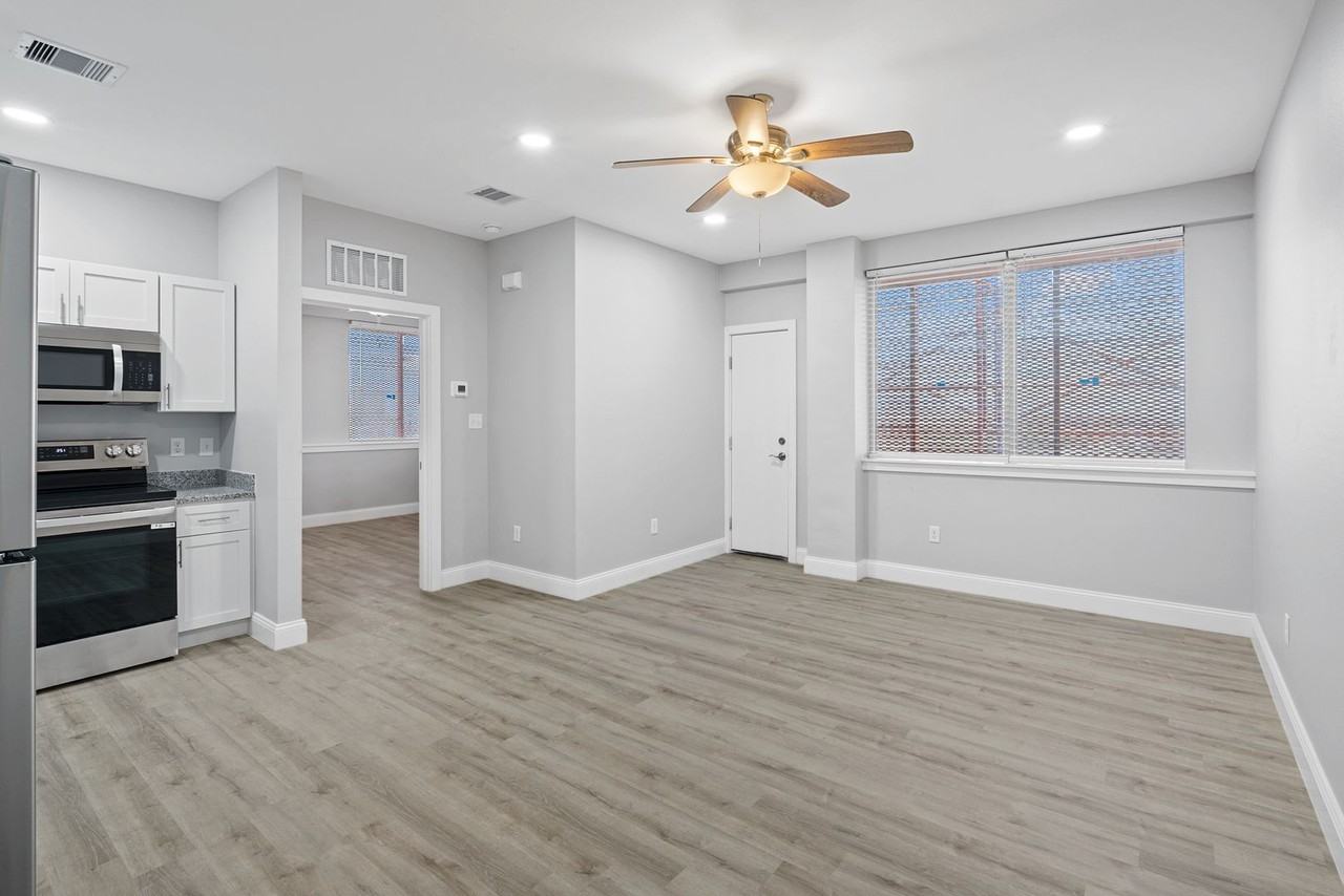 Located in the vibrant city of Corpus Christi, let the contemporary interior pull you in with high ceilings, vinyl flooring, and shaker style cabinets creating a modern and stylish living space. The kitchen is a chef's dream, equipped with stainless steel LG bluetooth range, dishwasher, garbage disposal and stunning granite countertops. The central A/C ensures a comfortable environment year-round, while ceiling fans add an extra touch of convenience. Located in the heart of Six points, Imperial apartments is near public transport, amazing restaurants and a short walk to Del Mar College.