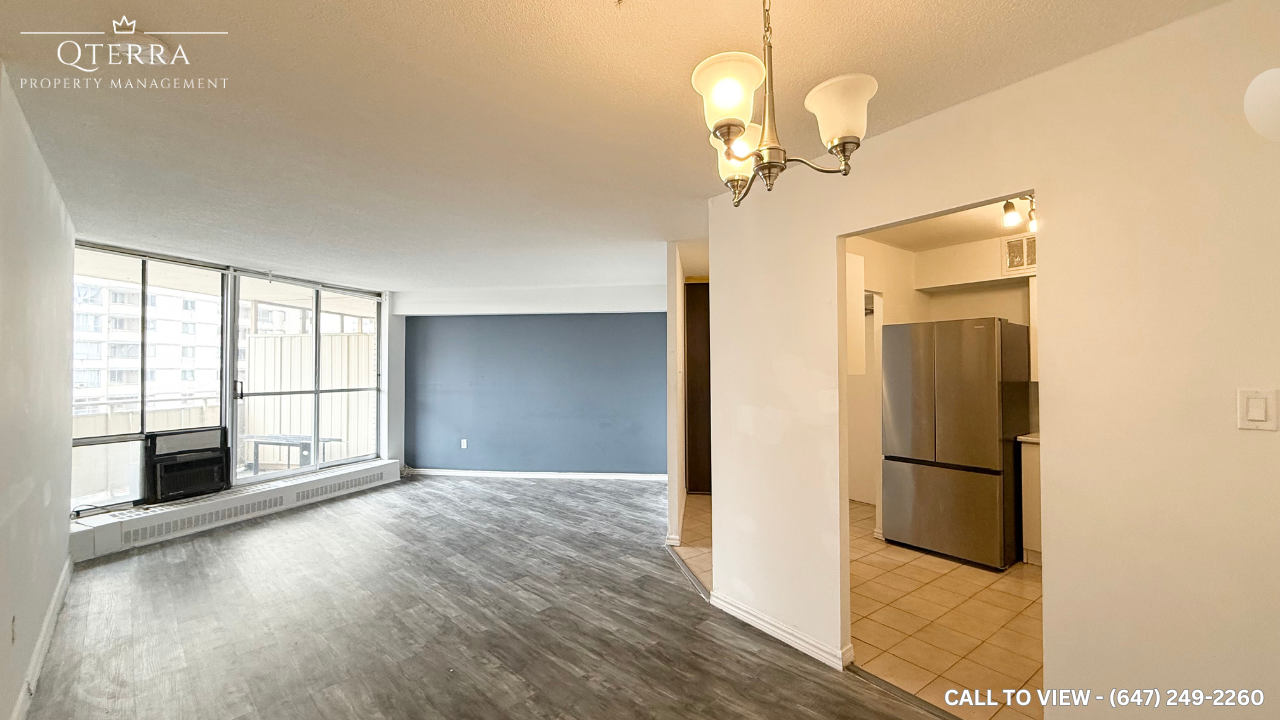 GORGEOUS 1-BEDROOM CONDO WITH MODERN AMENITIES Text or Call to View: (647) 249-2260 This beautifully designed condo offers a harmonious mix of modern upgrades, natural light, and luxury amenities, making it perfect for professionals or couples seeking a stylish urban lifestyle. With its convenient location and exceptional features, this unit is not to be missed. KEY PROPERTY DETAILS: - Type: Condo - Bedrooms: 1 - Bathrooms: 1 - Size: 700 SQF - Parking: 1 spot included - Availability: Immediately - Virtual Tour: [https youtu be 3734UsYoCz8](https youtu be 3734UsYoCz8) UNIT AMENITIES: - Condition: Newly renovated and move-in ready, offering a fresh and inviting environment. - Upgraded Kitchen: A modern kitchen with stainless steel appliances and Formica countertops ensures both style and functionality for your culinary needs. - Flooring: The condo features a combination of laminate and vinyl flooring, providing durability and a contemporary look. - Ceiling: 8.5-foot ceilings enhance the sense of space and light within the unit. - View: Enjoy stunning views of the cityscape from the comfort of your home. - Balcony: A private corner balcony offers an intimate outdoor retreat to relax and unwind. - Thermostat: Personal thermostat included for customized temperature control. - Laundry: Ensuite laundry facilities provide added convenience for daily living. - Closets: Regular closets in all rooms ensure ample storage space for your belongings. - Bathrooms: The upgraded bathroom features sleek finishes and a modern design. - Open Concept Layout: The open concept design maximizes space and flexibility, perfect for contemporary living. - Furnishing: Unfurnished, allowing you to personalize the space to suit your style. - Natural Light: As a corner unit, it is bathed in natural sunlight through its large windows, creating a bright and welcoming living space. BUILDING AMENITIES: - BBQ Area/Terrace: Outdoor spaces for hosting or relaxing. - Gym: Fully equipped fitness center to meet your exercise goals. - Rec Room & Party Room: Ideal for social events and gatherings. - Meeting Room: A professional space for work or meetings. - Security Features: On-site security guard and comprehensive security system for peace of mind. - Bike Storage: Convenient storage for bicycles. - Indoor Pool: A luxurious year-round amenity for swimming and relaxation. - Visitor Parking: Ample parking for guests.
