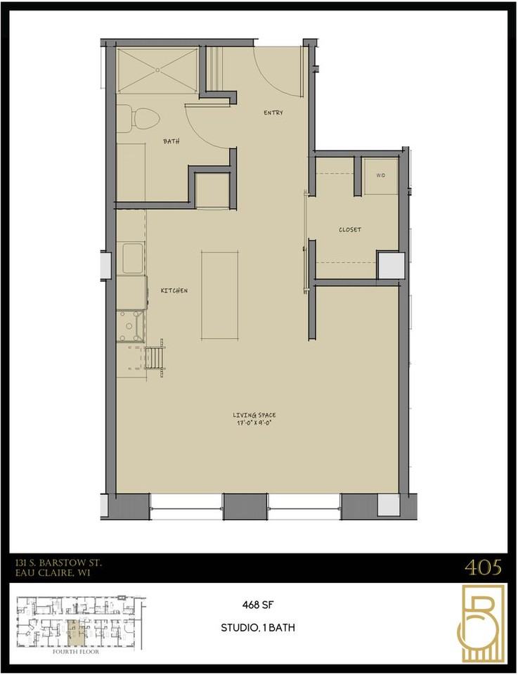 | 0BR/1.0BA | Studio | 1 bath | 468+ sqft | $950–$975 /mo | 2 units available | Studio unit with 1 bath in the heart of downtown Eau Claire. Barstow Commons seamlessly blends historic charm with modern amenities. High ceilings, large windows, polished concrete floors, and in-unit washer-dryer combos create a sophisticated urban living experience, all within a secure, welcoming environment. |