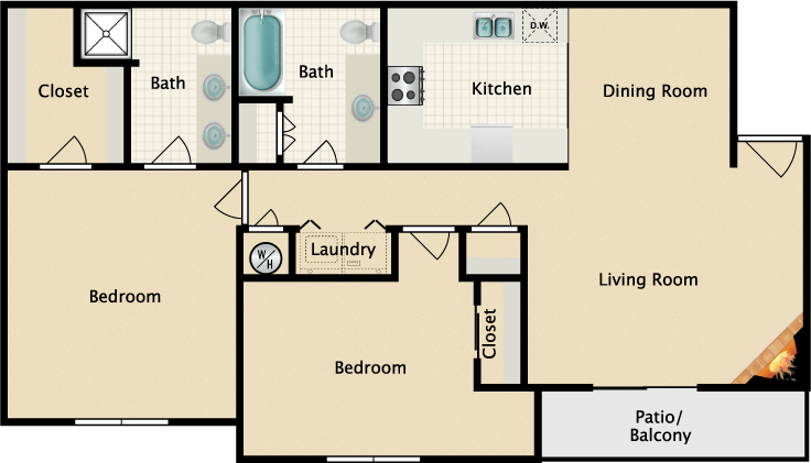 | 2 bed | 2 bed | 2 bath |