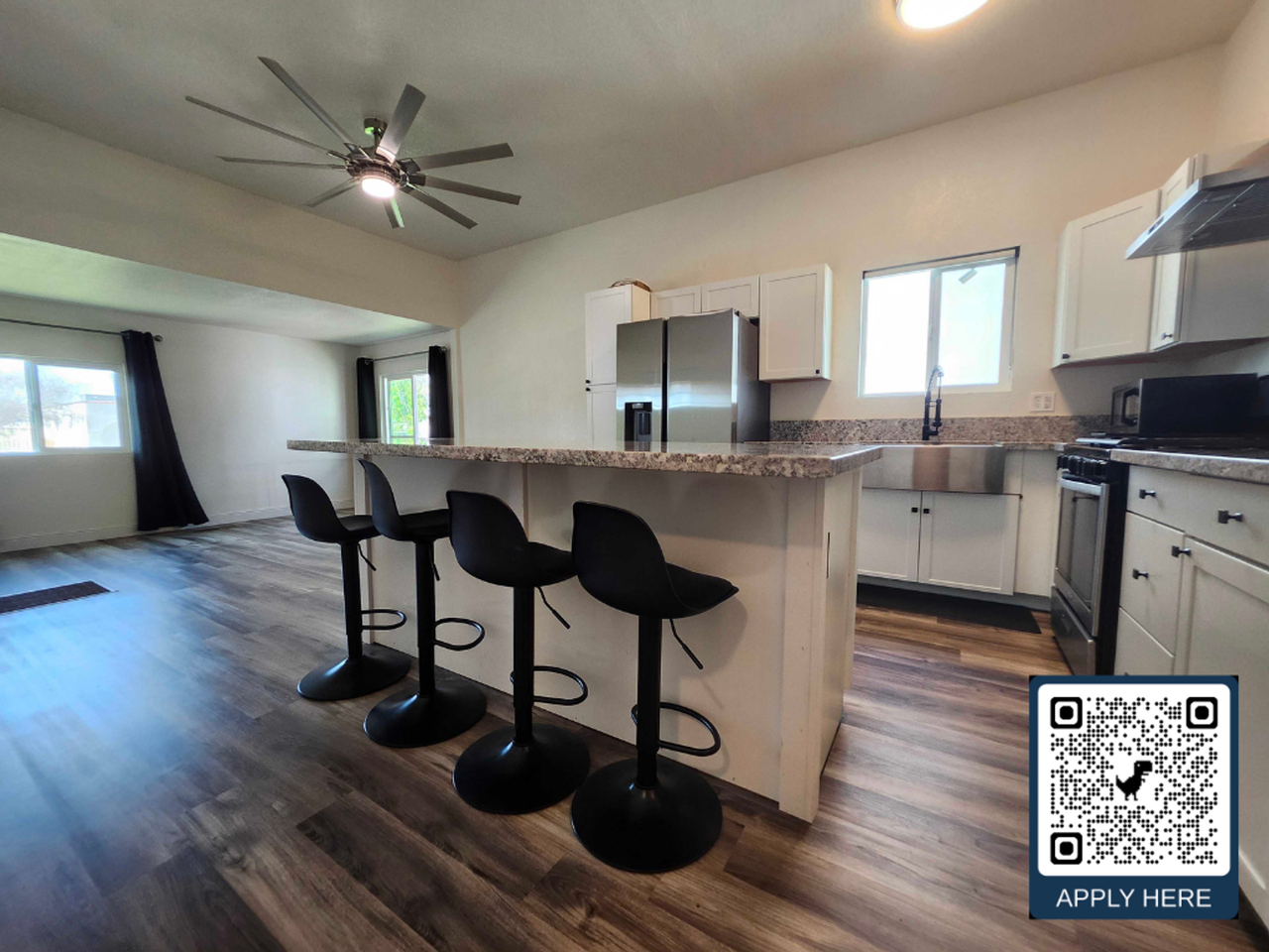 - Open-concept kitchen