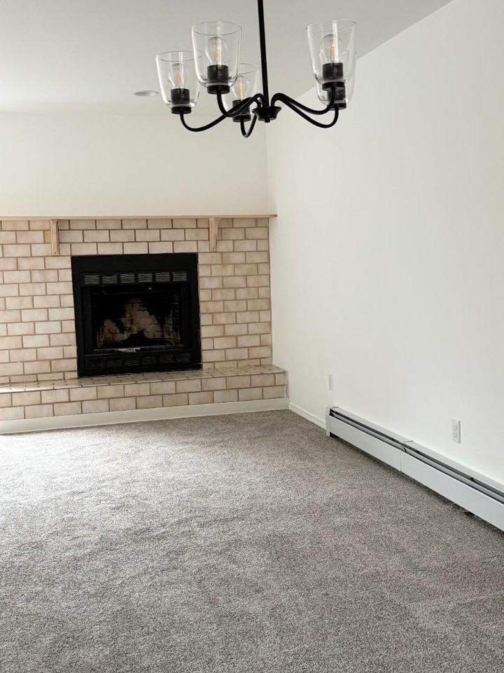 - Living room with wood fireplace