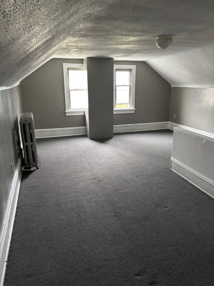 2 Bedroom, 1 Bathroom upstairs apartment with auxiliary room.