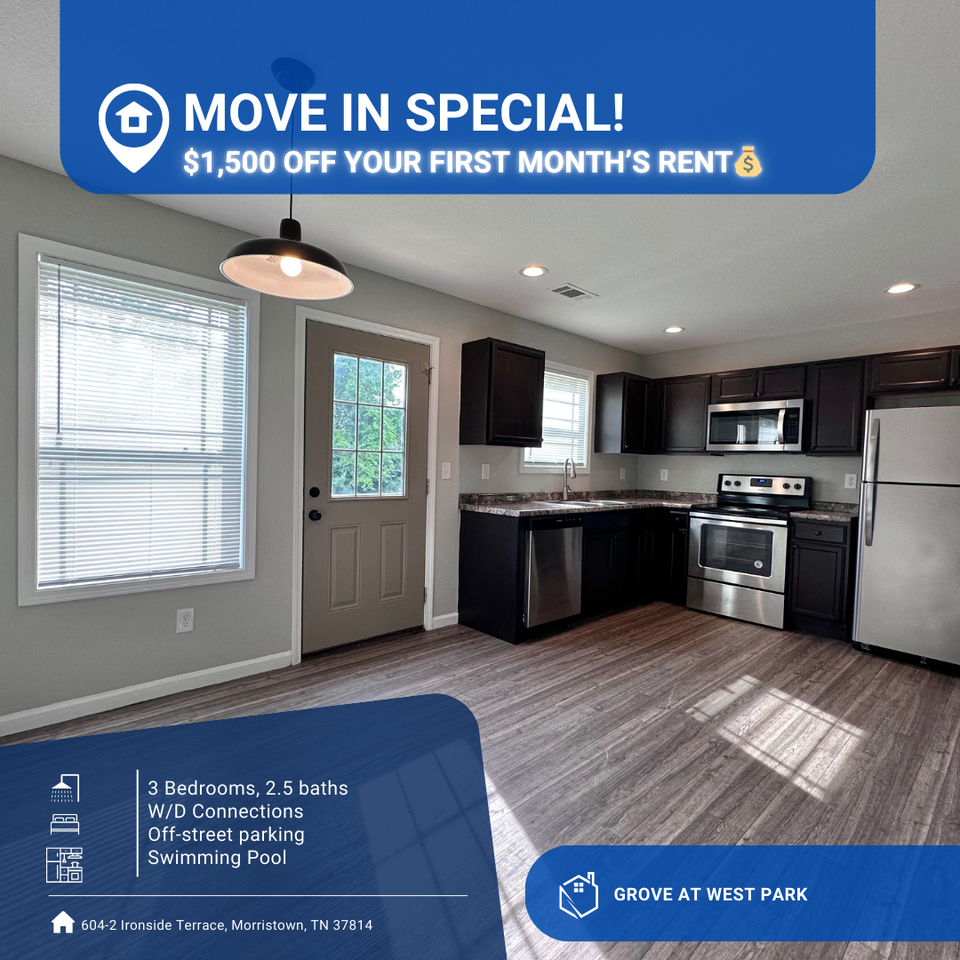Welcome to The Grove at West Park, a serene community offering spacious 3-bedroom townhomes that blend upscale living with everyday convenience. Nestled in the highly sought-after West End of Morristown, this neighborhood offers more than just a place to live — it’s a lifestyle. Enjoy breathtaking views of the surrounding mountains while being just minutes from local attractions including Cherokee Lake, Panther Creek State Park, Great Smoky Mountains National Park, Pigeon Forge, and more. Conveniently located near shopping, restaurants, grocery stores, and the Morristown Landing recreational center, everything you need is right at your doorstep. Residents also enjoy access to community amenities like a sparkling swimming pool and a fun-filled playground — perfect for relaxation or recreation. The Grove at West Park offers the perfect combination of location, comfort, and style. Come experience your new home today!