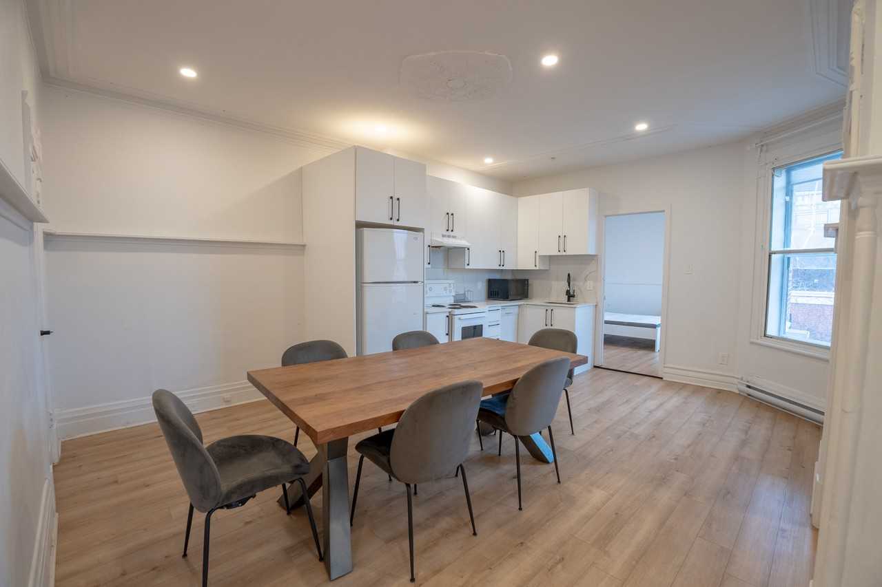 ~ Appartement meublé de 5 chambres au cœur du Plateau Mont-Royal ~ Bienvenue au 252, Laurier Est, idéalement situé dans le quartier vibrant et accessible à pied du Plateau Mont-Royal — à quelques pas du parc Laurier, de cafés-boutiques et de tout le charme des rues Saint-Laurent et Saint-Denis. Cet appartement récemment rénové de 5 chambres et 2 salles de bain offre un parfait équilibre entre espace, style et confort — idéal pour les étudiants ou colocataires à la recherche d’un logement confortable et entièrement meublé dans l’un des quartiers les plus prisés de Montréal. Chaque chambre est soigneusement meublée avec un lit, un matelas, une armoire et une table de chevet, offrant une expérience prête à emménager. Le logement comprend également un ensemble complet d’électroménagers : réfrigérateur, cuisinière, lave-vaisselle, laveuse et sécheuse pour votre confort. Station de métro la plus proche : Laurier Lignes d’autobus à proximité : 51, 55, 427 Vous avez une voiture ? Stationnement sur rue disponible avec vignette municipale. Exclusions : chauffage, eau chaude et électricité ~ Furnished 5-bedroom apartment in the heart of Plateau Mont-Royal ~ Welcome to 252 Laurier Est, ideally situated in the vibrant and walkable Plateau Mont-Royal neighbourhood — just steps from Laurier Park, boutique cafés, and all the charm of Saint-Laurent and Saint-Denis streets. This newly renovated 5-bedroom, 2-bathroom apartment offers the perfect blend of space, style, and convenience — ideal for students or roommates seeking a comfortable and fully furnished home in one of Montréal’s most desirable areas. Each bedroom is thoughtfully furnished with a bed, mattress, wardrobe, and nightstand, providing a move-in ready experience. The unit also includes a full set of appliances: fridge, stove, dishwasher, washer, and dryer for your convenience. Nearest Metro station: Laurier Nearby bus lines: 51, 55, 427 Have a car? Street parking is available with a city permit. Exclusions: heat, hot water, and electricity