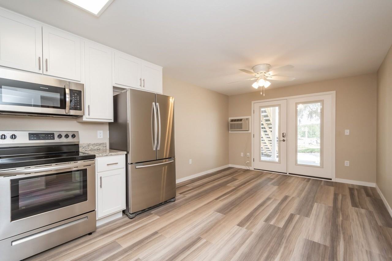 | 1BR/1.0BA | 1 bed | 1 bath | 502 sqft | $1,205 /mo | 1 unit available | River Ridge Place is a charming, pet friendly community in Coralville, IA! These 2019 remodeled units are located at 199 6th Street and feature beautiful granite or quartz counter tops, white cabinetry, stainless steel appliances, luxury wood vinyl plank floors, in unit washer & dryer, patio or balcony, free outdoor parking and options for 1 GIG fiber optics internet. Our River Ridge community is surrounded by beautiful green space and mature trees and also has an outdoor swimming pool and dog park for our residents and their pets to enjoy. The City bus stops directly in front of this community so your commute around town is super easy. There are many shops and restaurants within walking distance of this location as well! Cats and small-large dog breeds are allowed per Pet Policy. Breed restrictions apply. No pet deposit required for pets over 1 year old. Photos are of the actual unit! (199 #5) More information and the application for this apartment can be found at www RentHouser com |
