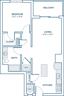 The bedroom offers a space to unwind and features an oversized closet. The adjacent full bathroom is conveniently positioned to serve both the bedroom and guests, completing this efficient and stylish floor plan.