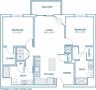 This floor plan offers a desirable split-layout design, with bedrooms positioned on opposite sides of the living room for maximum privacy. The primary bedroom features a pass-through closet that leads directly into a private en-suite bathroom.