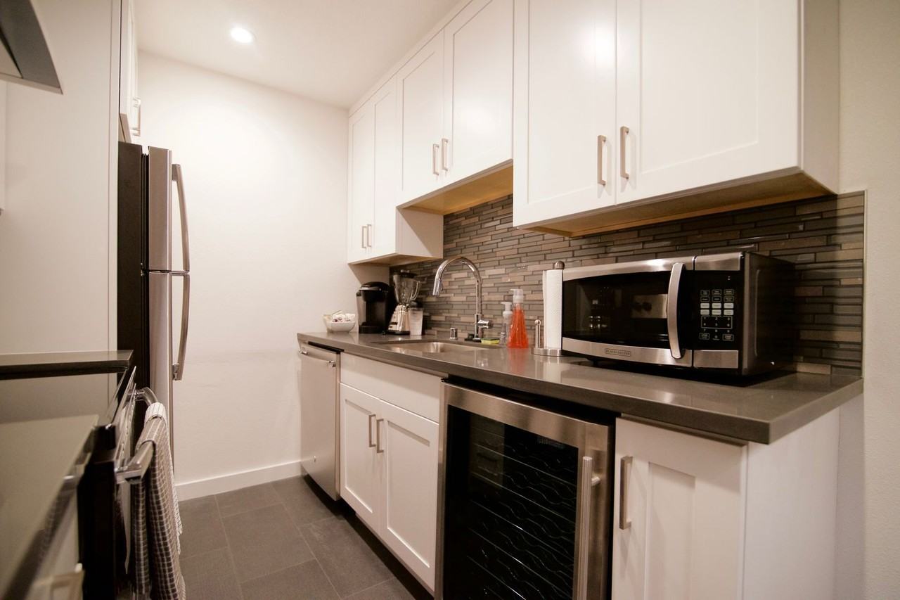 | 1BR/1.0BA | 1 bed | 1 bath | 650 sqft | Updated Renovated Flat: Stainless Appliances, Dishwasher, Air Conditioning, includes garage parking space. Apartment is unfurnished. Very Convenient Location: Walk to Downtown Redwood City and Caltrain, 3 blocks from Whole Foods, close to Stanford. $100 utility fee covers water, sewage, garbage and wifi. WiFi has an average speed of 105 Mbps as per Comcast. PGE is tenant responsibility. | ||