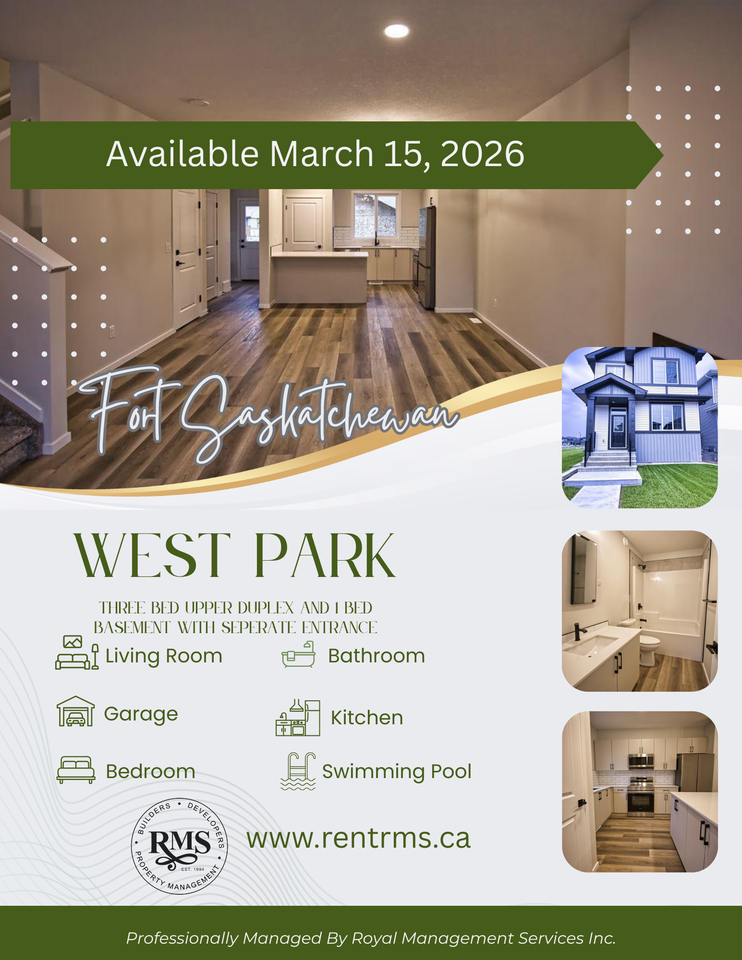 Discover Forest Ridge Living in Fort Saskatchewan! Now accepting applications for our Upper Duplex Suites and Private-Entrance Basement Suites for March 2026 Experience the perfect blend of nature and convenience. Located in the desirable West Park community, Forest Ridge offers breathtaking views and scenic trails along the North Saskatchewan River, all while keeping you close to city amenities—with a peaceful, rural feel. Nestled in this brand-new development, our modern two-storey homes and basement suites are designed to suit a variety of lifestyles. Upper Two-Storey Suites Spacious and thoughtfully designed, these homes feature: - 3 bedrooms and 2 bathrooms, ideal for families or those who love extra space - Energy-efficient in-suite washer and dryer for effortless laundry days - Sleek stainless steel kitchen appliances - Luxury vinyl plank and carpet flooring for style and durability - A large, open kitchen with breakfast bar, perfect for entertaining Lower One-Bedroom Basement Suites Cozy, private, and efficient, these suites include: - Private bedroom, bathroom, living area, and in-suite laundry - Separate entrance for added privacy - Energy-efficient features designed to keep utility costs low - An ideal setup for individuals or couples seeking comfort and value Both upper and lower suites enjoy access to a shared, beautifully maintained backyard. Utilities are split between suites. Interested in renting the entire home? Let’s talk—anything is possible! Apply today and make Forest Ridge your new home.