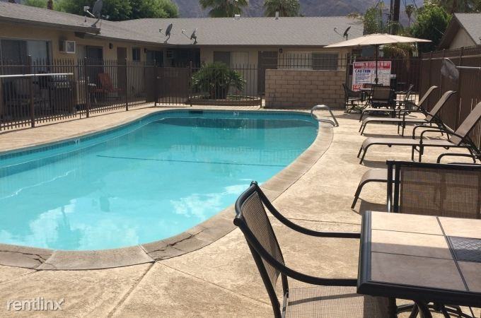 | 1 Bedroom | 1 bed | 1 bath | The property is conveniently located across the street from The Riviera Resort & Spa at Vista Chino and Indian Canyon. The property is also located only a few blocks from several schools, a park and is within close proximity to downtown Palm Springs and all of its amenities. The property has been renovated both interior and exterior. The renovations include all new exterior painting, exterior foam and stone treatment, all new landscaping, all new lighting, new pool decking, pool furniture, new BBQ’s in the courtyard and all new laundry equipment for the laundry rooms. Additionally, all of the interiors of the units have been renovated as well. This includes new flooring, new carpeting, new paint, new blinds, new energy efficient heating and air conditioning systems, all new appliances, new hardware and finishes. The complex consists of studio, one bedroom and two bedroom units and all include a refrigerator. |