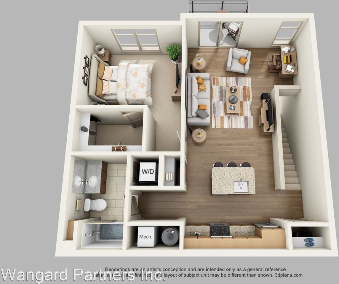 Spacious 1 Bed/ 1 Bath Upper Private Entry Unit with Space for Small Office Above Stairs - The Reef apartment homes feature painted millwork and pecan cabinetry. Plank flooring adorns the entry, kitchen, and living area with a Berber carpet in the bedroom and closet area. Exquisite granite countertops grace both the kitchen and bath. The Reef ‘s clubhouse offers amenities such as a private clubroom with a two sided fireplace and spacious kitchen for entertaining, 24-hour fitness center, large dog park, and a pool with surrounding patio, including a grill and fire pit.