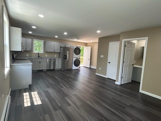 This charming 2-bedroom, 1-bathroom rental offers a bright living room, a brand new modern kitchen, and comfortable bedrooms with generous closet space. Enjoy modern fixtures in the bathroom, in-unit laundry, and included garbage and sewer services. Situated in a quiet neighborhood near shops, restaurants, parks, and schools, this apartment features off-street parking and outdoor space. Close to major highways and public transportation! Open house will be Sunday June 9th from 10am to 11am. Applications are not required but strongly encouraged to be completed to be considered for tenancy.