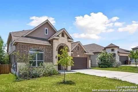 Flexible Lease Terms ~ inquire to learn more! Experience modern living in this expansive 2,800+ sqft New Leaf home, complete with a remarkable solar panel array that massively reduces your electric bills year-round in Texas. The main floor features a grand entrance, dining room, a secondary bedroom plus flexible space, and a living room boasting dramatic high ceilings. The open kitchen, equipped with an entertaining-friendly island, seamlessly combines with the living area. The oversized primary suite includes a luxurious full bath, just one of the many remarkable features. Upstairs, discover the remaining two secondary bedrooms, a vast game space, and step outside to relish the covered patio and the serene privacy offered by the utility casement behind the house. Double door garage for easy parking and storage and back patio. The local neighborhood offers a community pool and playground for residents only. With easy access to IH-10, Randolph AFB, The Forum shopping center, and downtown San Antonio. Move in ready as property comes with washer, dryer, fridge/freezer and dishwasher. No smoking in the house Pets must be disclosed. Video doorbell, Security and Monitoring System are part of amenities.