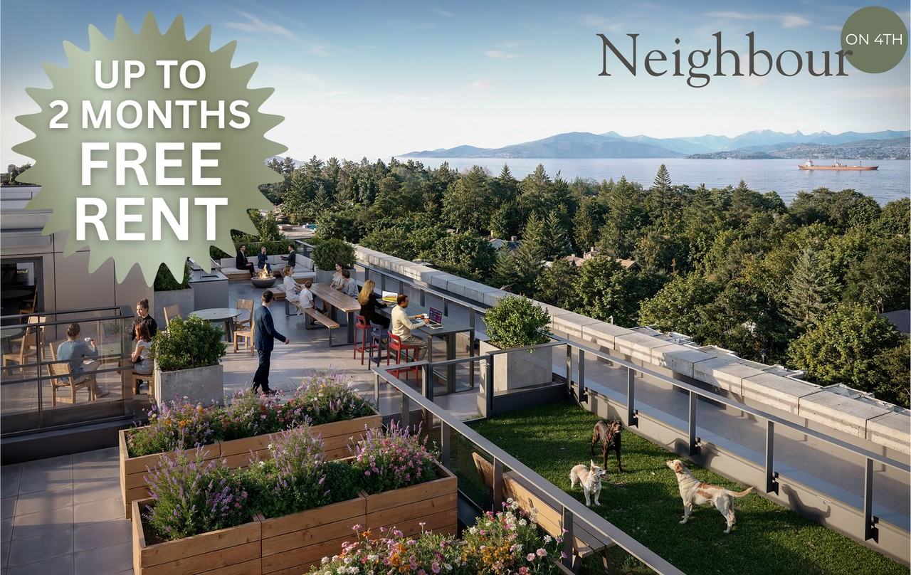 *****TOURS NOW AVAILABLE, MOVE IN TODAY***** Your brand new home in the heart of Kitsilano awaits! Welcome to Neighbour on 4th, a modern purpose built rental building with 54 studio and 2 Br suites owned and professionally managed by Orr Development. Be the first to live in these stunning new homes! SUITE FEATURES: • Comfort cooling in every suite, perfect for those hot summer days! • Efficient open concept floorplans • OCEAN VIEWS FROM 4TH FLOOR AND ABOVE • Luxury LVP and Tile flooring throughout (No carpets!) • Custom built in storage solutions • Gourmet kitchens with Quartz counters & Stainless appliance package • Spacious spa like bathrooms with deep soaker tubs • In suite laundry • In suite flex/storage rooms in every unit! (Yes even the studios!) BUILDING FEATURES: • Walk Score 97 - Bike Score 98 • Purpose built rental building provides tenants the security of longterm tenure • Oceanview rooftop amenity space with children's play area, community garden, BBQ and outdoor kitchen, picnic area and pet zone • Indoor amenity lounge w/ outdoor space, coworking space & wifi, communal dining table, lounge area, games table, book exchange, foosball table etc • Secured underground parking and storage available • Owned and professionally managed by Orr development with full time maintenance staff • FOB secured building at all entry points, elevators and each floor level, 1VALET ENTERPHONE • Security Cameras and regular security patrols • Pet friendly both cats and dogs • No Smoking NEIGHBOURHOOD FEATURES: • Minutes from Kitsilano beach/pool, Jericho beach and Spanish banks • Major transit routes at your doorstep including the 44 bus connecting to UBC and downtown along with a few minutes walk to the 99 B line bus connecting to UBC and skytrain • Convenient access to many grocery options including Safeway and Whole Foods, Connaught Park Farmers Market • Kitsilano community centre & Ice Rink • This neighbourhood is a foodie's dream close to an abundance of restaurants and cafes both on 4th Ave and Broadway ***NOTE: Images shown are for reference only and may not accurately represent each available unit***