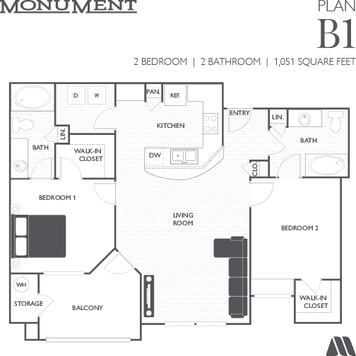 | 2 Bed/2 Bath | 2 bed | 2 bath | 1,051 sqft | $1,914–$1,949 /mo | 2 units available | ||