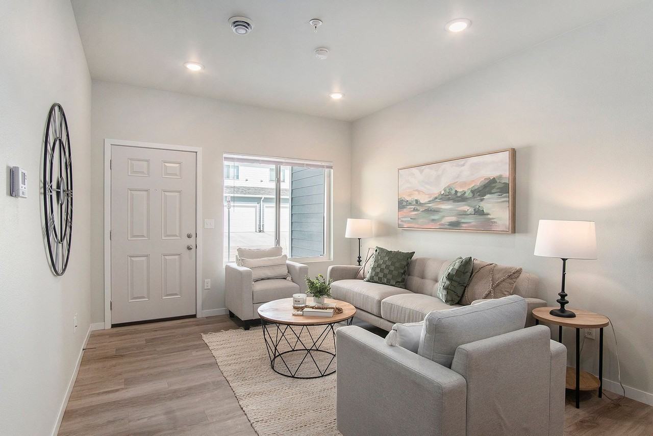 | Newby - Townhome(IK2E) | 2 bed | 2.5 bath | 1,169 sqft | $1,600 /mo | 1 unit available | This charming two-story townhouse offers 1,169 sq. ft. of smart living space, featuring 2 bedrooms, 2.5 baths, and a 405 sq. ft. garage. Plus, enjoy the bonus of a versatile second-floor loft—ideal for a home office, media room, or extra lounging space. The perfect blend of comfort and style awaits! UNIT HIGHLIGHTS: • Coat Closet • Ground Level Entrance • Laundry Room • Loft • Front Patio • Private Entrance • Double Attached Garage • Shower in Master Bath • Linen Closet in Master Bath • Linen Closet in Full Bath 3D Virtual Tour link: https tour theviewvr com ?locationId=4115&fullscreen=false&autoFollow=true&autoRotate=true&autoPlay=true&hideStart=false&isolate=true&arrows=true&hideMinimap=false&hideWebsiteBtn=false&locationName=Newby&source=LeasingDoc&uiColor=%233d5868 | |