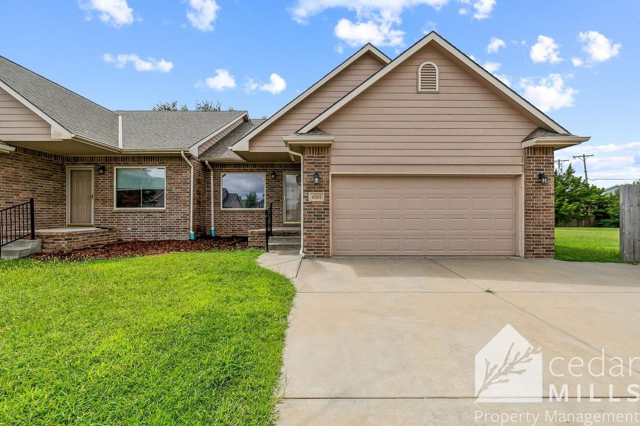 *MOVE IN SPECIAL*! SIGN A LEASE FOR 12 MONTHS AND GET HALF OFF FIRST FULL MONTH RENT OR SIGN FOR 18 MONTHS AND GET A FULL MONTH RENT FREE! This is a 3 bed, 3 bath townhome located just south of 45th street north, and east of Rock Rd. The property features a number of upgrades including all new flooring and paint. Upstairs has very high, vaulted ceilings and a bright feel. The kitchen is very inviting and there's a dining area and patio door leading to back yard. Two bedrooms and two bathrooms are located upstairs, as well as laundry. The master does have en suite bathroom. In the basement there is another family room with fire place, a 3rd bathroom and the 3rd bedroom. There's an additional unfinished room in the basement for storage or rec room. Tenant pays all utilities here, including trash. Lawn care is provided. No violent felonies or sex crimes Must make at least 3X the rent No open bankruptcies, no recent evictions Credit scores 575 and higher Rent $1495 Deposit $1495 + $150 move in fee App fee $40 per adult