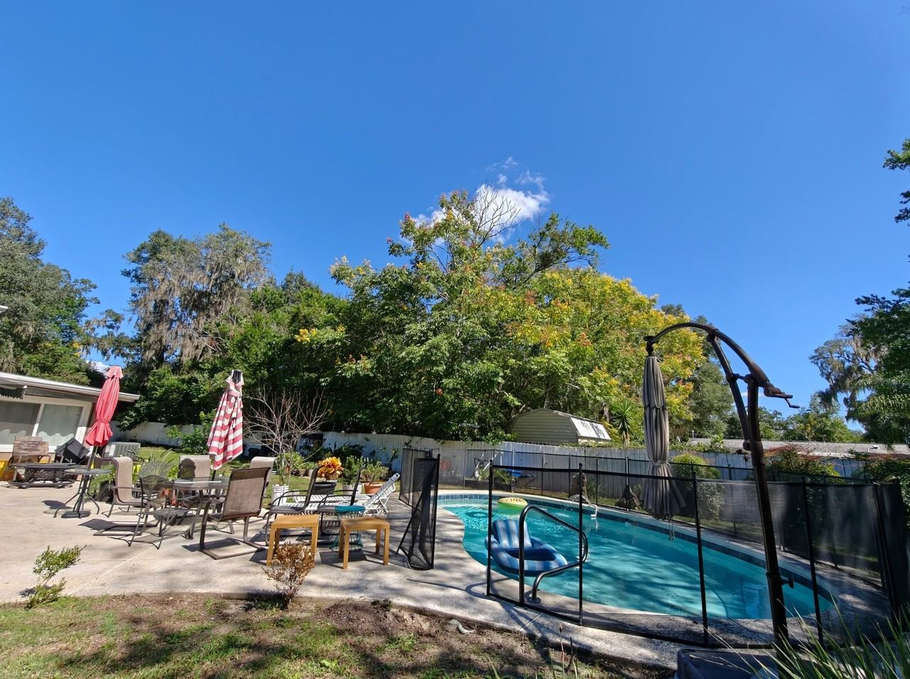Available for immediate move-in, within 5 days of approved application through July 31, 2026! Beautiful 1 bedroom / 1bathroom + bonus room with pool! Experience comfort and style in this thoughtfully designed retreat that feels much larger than its layout suggests. This home maximizes space, versatility, and functionality. Featuring an oversized living room, fully equipped kitchen, a spacious heated/cooled Florida room (ideal for an office, gym, or guest space) and a sparkling private pool for year-round enjoyment. Adjacent to the pool, a covered porch with lush indoor garden provides a tranquil retreat for relaxing or entertaining. Step outside to a large fenced in backyard with a fire pit, perfect for outdoor gatherings or quiet evenings. Enjoy unbeatable convenience with everything you need just minutes away, including Millhopper Square and Thornebrook Village, Publix, The Fresh Market, Bagel Bakery, Uppercrust, The Flying Biscuit, Book Gallery West, the Gainesville Community Playhouse, North Florida Hospital, The Oaks Mall, Gainesville Health & Fitness, CVS Pharmacy, gas stations, the post office, and a variety of popular restaurants. Plus, a nearby bus route to UF and Santa Fe College makes commuting easy and stress-free. ** This property is a duplex with a shared backyard. While the outdoor space is shared with the adjoining neighbor, you will be the only one authorized to use the pool.* * UTILITIES: Water & electricity included (up to $150/month, tenant pays any overage). OWNER RESPONSIBILITIES: Exterior & interior pest control, Pool maintenance, Lawn care, General property maintenance. APPLICATION CRITERIA: Income must be 3x the monthly rent, Minimum credit score of 620. FEES: $55 application fee per applicant, co-signer, or adult occupant; $200 administrative fee (due after approval); $2,015 security deposit (30% non-refundable, rest contingent on property damages assessed); $1,550 first months rent. Short-term lease option (6 months or less) avai