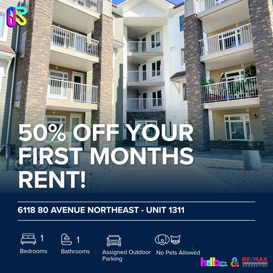 Fantastic 1 Beds, 1 Baths Apartment/Condo | No Pets Allowed | 50% Off First Month's Rent if Move-in by Nov 15/25 Welcome to your new home at 6118 80 Avenue Northeast - Unit 1311 - Unit 1311 — a modern and well-maintained 1 beds / 1 baths / Apartment/Condo offering comfort, space, and convenience. Ideally located close to shopping, schools, parks, and transit. \_\_\_\_\_\_\_\_\_\_\_\_\_\_\_\_\_\_\_\_\_\_\_\_\_\_\_\_\_\_\_\_\_\_\_\_\_\_\_\_\_\_\_\_\_\_\_\_\_\_\_\_\_\_\_\_\_\_\_\_\_ SHOWINGS: Conducted in an open-house format — book your appointment today! https showmojo com 79c3e9f0b2 l Prices, availability, and promotions are subject to change without notice. VIDEO TOUR: https youtu be uY8KyPYJ2HI \_\_\_\_\_\_\_\_\_\_\_\_\_\_\_\_\_\_\_\_\_\_\_\_\_\_\_\_\_\_\_\_\_\_\_\_\_\_\_\_\_\_\_\_\_\_\_\_\_\_\_\_\_\_\_\_\_\_\_\_\_ PROPERTY DETAILS: - Furnished or Unfurnished: Unfurnished - Pets: No Pets Allowed - Smoking: Non- Smoking - Parking: Assigned Outdoor - Storage Included: No - Laundry: In- Suite Laundry - Management Type: Full Management - Lease Term: Long Term \_\_\_\_\_\_\_\_\_\_\_\_\_\_\_\_\_\_\_\_\_\_\_\_\_\_\_\_\_\_\_\_\_\_\_\_\_\_\_\_\_\_\_\_\_\_\_\_\_\_\_\_\_\_\_\_\_\_\_\_\_ UNIT FEATURES: - Living Space:Open-concept living room layout, perfect for relaxing or entertaining featuring: Large windows - Kitchen: Sleek and modern kitchen with appliances featuring: for a contemporary look with plenty cabinet storage to keep everything organized - Dining Space: Open-concept design flowing into the living space, perfect for entertaining - Bedrooms: 1 Bedrooms with some bedrooms featuring ample storage for clothing and accessories - Window Coverings: Includes window coverings for privacy and light control \_\_\_\_\_\_\_\_\_\_\_\_\_\_\_\_\_\_\_\_\_\_\_\_\_\_\_\_\_\_\_\_\_\_\_\_\_\_\_\_\_\_\_\_\_\_\_\_\_\_\_\_\_\_\_\_\_\_\_\_ UTILITIES: - Utilities Included: Heat, Water Here's a helpful tool you can use to get a rough estimate of utility costs. Just check out the link: https ucahelps alberta ca cost-comparison-tool \_\_\_\_\_\_\_\_\_\_\_\_\_\_\_\_\_\_\_\_\_\_\_\_\_\_\_\_\_\_\_\_\_\_\_\_\_\_\_\_\_\_\_\_\_\_\_\_\_\_\_\_\_\_\_\_\_\_\_\_\_ LOCATION HIGHLIGHTS: - Outdoor Living: Nearby Parks, Pathways, Greenspaces - Transit & Access: Transit Lines / Major Roads Nearby - Family Friendly: Close to Schools, Childcare, Rec Centres - Local Conveniences: Groceries, Shops, Restaurants, Services Nearby Don't wait — properties like this don't last long. Book online today: https showmojo com 79c3e9f0b2 l