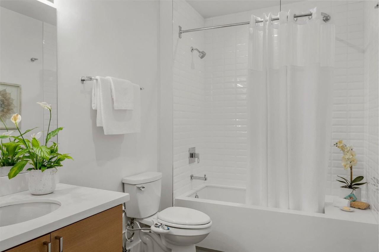Stylish 1-bedroom condo featuring wide-plank wood floors, a cozy gas fireplace, built-in speakers, recessed lighting, and high-end designer finishes throughout. The sleek kitchen offers quartz countertops, custom cabinetry, Grohe fixtures, and premium stainless steel appliances, including a Bertazzoni gas range, Bosch dishwasher, and Summit refrigerator. Residents can enjoy a furnished shared rooftop deck with panoramic city and Bernal Hill views. Additional amenities include security intercom, bike parking, and Google Fiber WebPass availability. Ideally located near Valencia Street?s popular dining, shops, nightlife, and convenient transit and freeway access